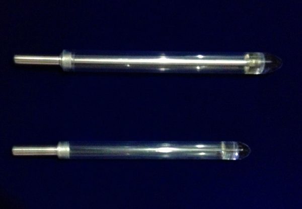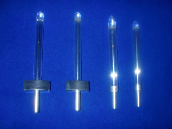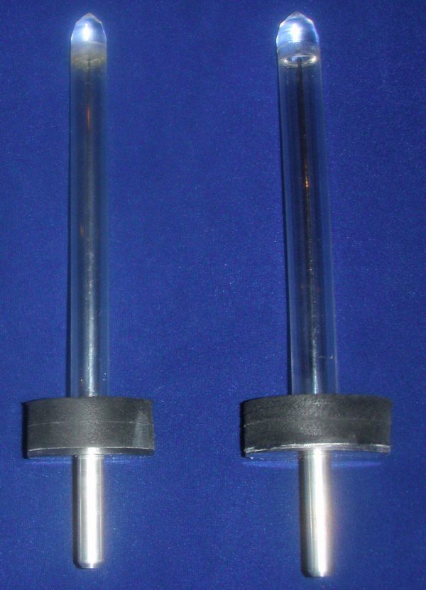 The body of the DV8™ Insertable Electrodes is made of Polycarbonate (the stuff bullet proof windows are made of, a common brand is “Lexan®), the tip is acrylic. The solid aluminum connector is precision made on a lathe. These electrodes are available in 3/4 inch and 5/8 inch diameter.