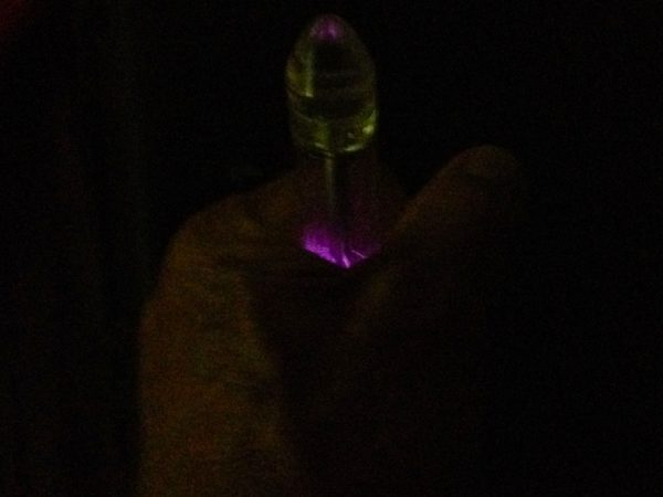 These electrodes can of course be used anywhere on the body and will spark on full contact. Picture 8 shows and electrode firmly held, picture 9 touching the palm of the hand. As the idea is that the electrodes can be felt upon insertion, I recommend using Wands with a minimum output of 30,000 Volts. I feel it’s not worth using these on the low-power solid state devices.
